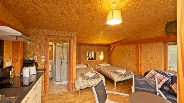 As an alternative to bed and breakfast, Alistair has designed and built our unique timber-framed eco microlodges for a self-catering /glamping option.
